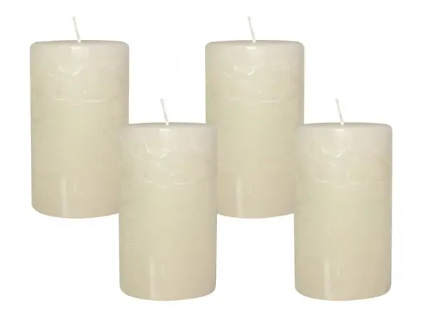 4 Rustic Stumpenkerzen Premium Kerze Creme Weiß 6x10cm – 38 Std Brenndauer Kostenloser Versand